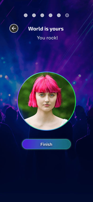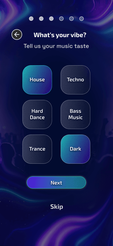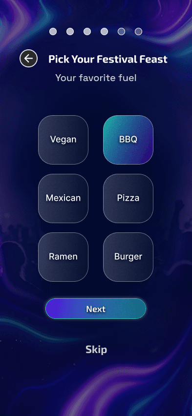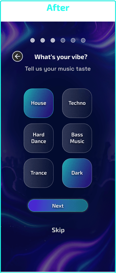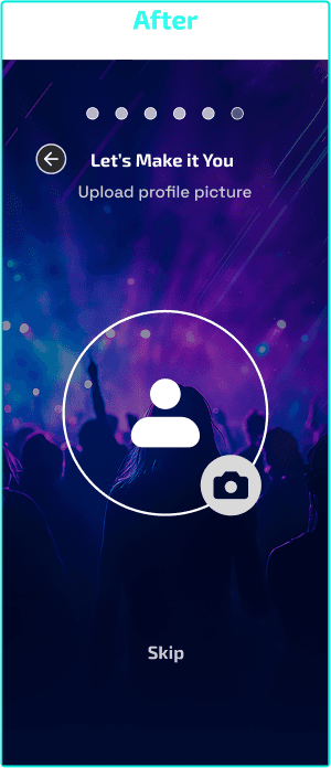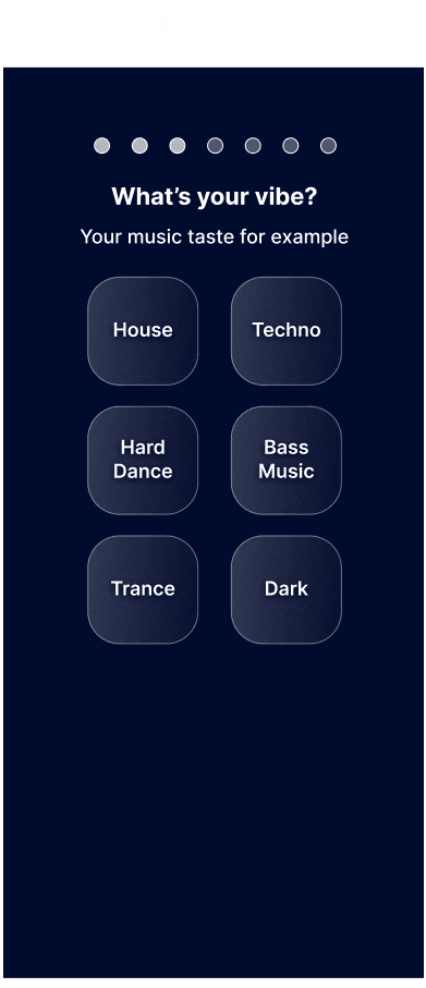 To make the onboarding process more fun and set the vibe, AI-generated photos were added to the background.