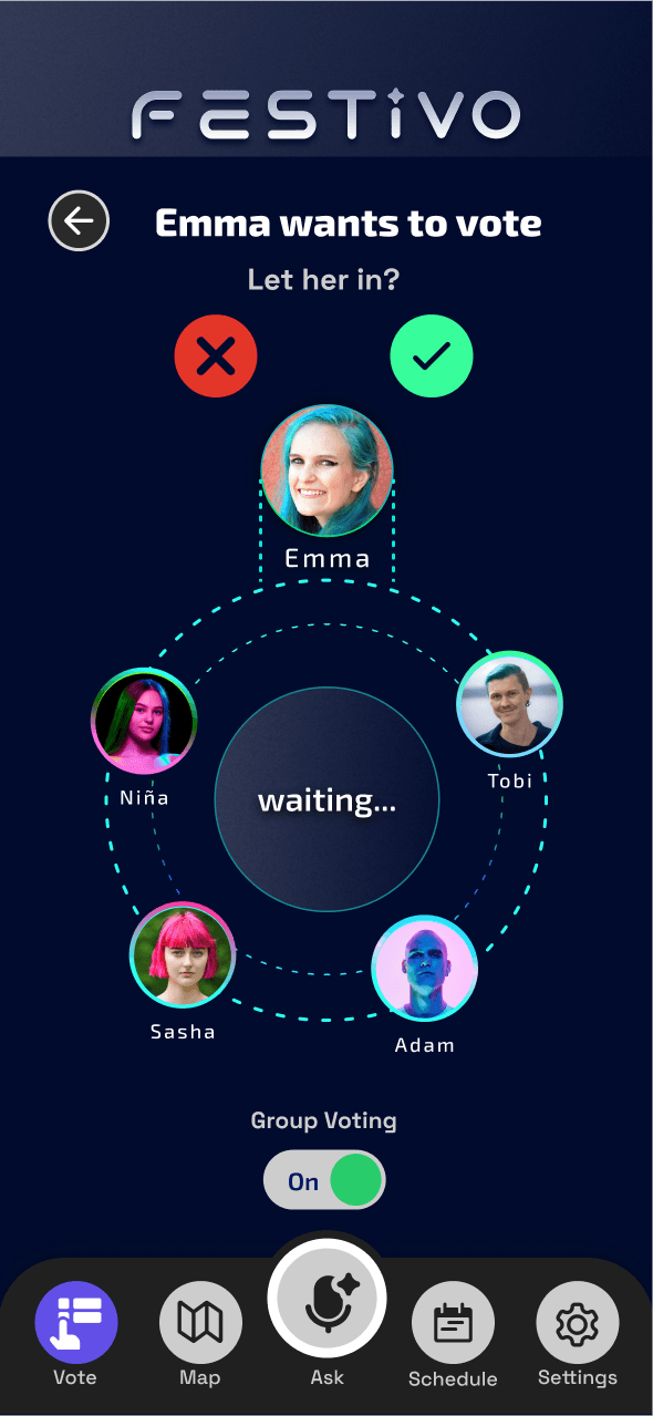 By letting users vote on and rate artists as a group, the app builds a shared schedule that reflects everyone’s preferences.